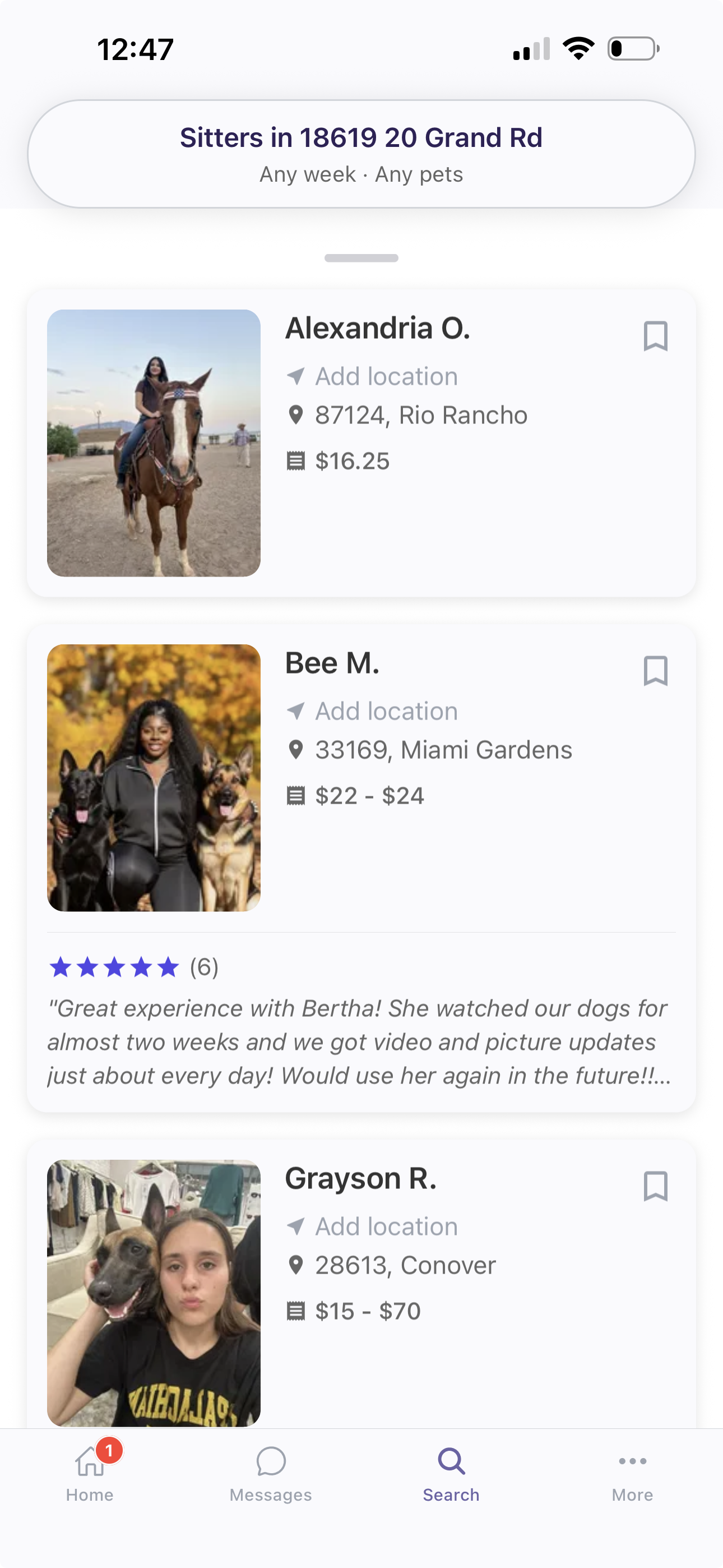Simplemente busca cuidadores en tu zona, revisa sus perfiles, lee las reseñas y envía una solicitud de reserva. Puedes enviar mensajes a los cuidadores directamente antes de reservar para asegurarte de que sean la opción adecuada.